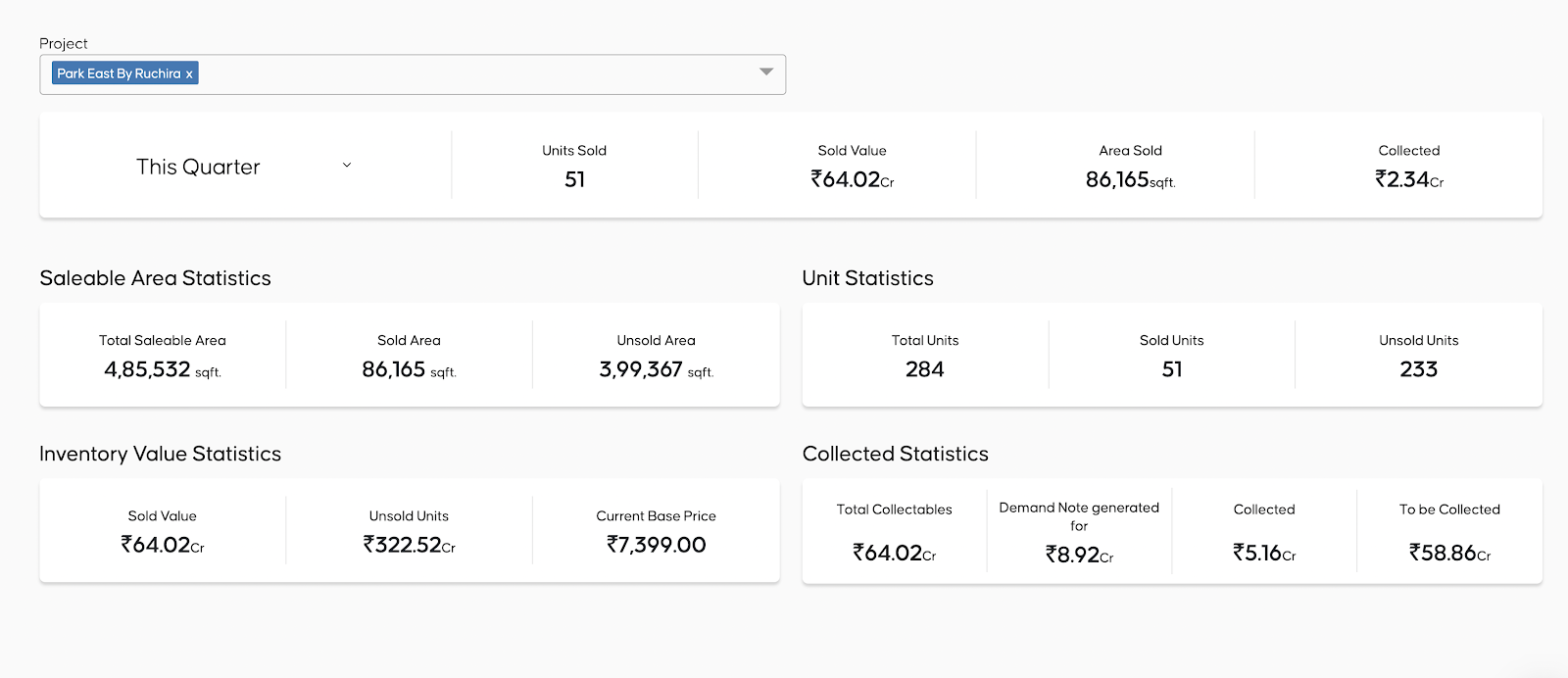 Realtime MIS reports on Sales Velocity & Collections Project wise
